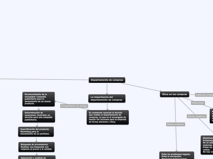 Mapa conceptual del departamento de compras. El departamento de compras debe hacer importantes esfuerzos para incrementar los niveles de estandarización. Hablar del sistema tributario de la Nación sería como despejar su comprensión. El autor Cristóbal del Río considera que el departamento de compras está a cargo del abastecimiento de los materiales que le sean solicitados. Un gerente de tienda y esposa jefa de compras que trabajan en una 6 9. Número de artículos requeridos por el departamento de. DIAGNÓSTICO DE LA EMPRESA 63 211.