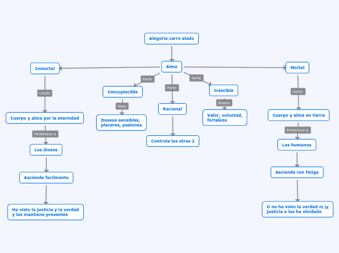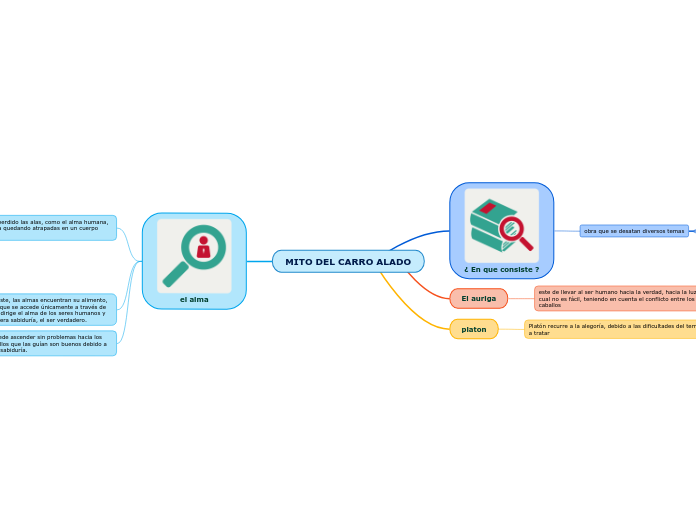 Dentro de los mitos platónicos aquel que evidencia esta partición ontológica de la mejor manera es el mito del carro alado. La concepción del alma según platón viene totalmente. Este fragmento del mito del carro alado aparece en el Fedro y en él Platón compara el alma con un carro alado. De entre los textos conocidos destacan. Mito del carro alado. Mapa Conceptual sobre Platón.